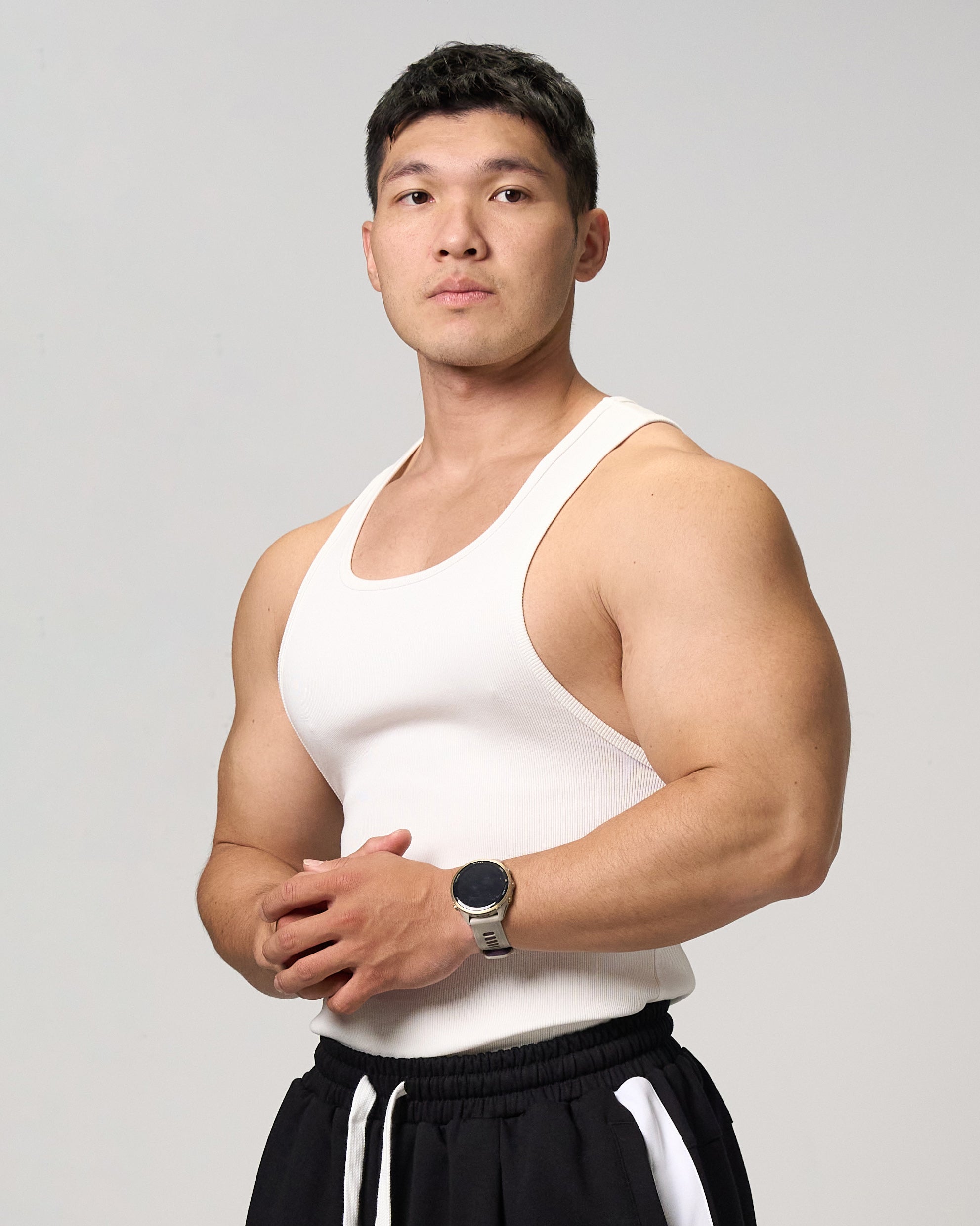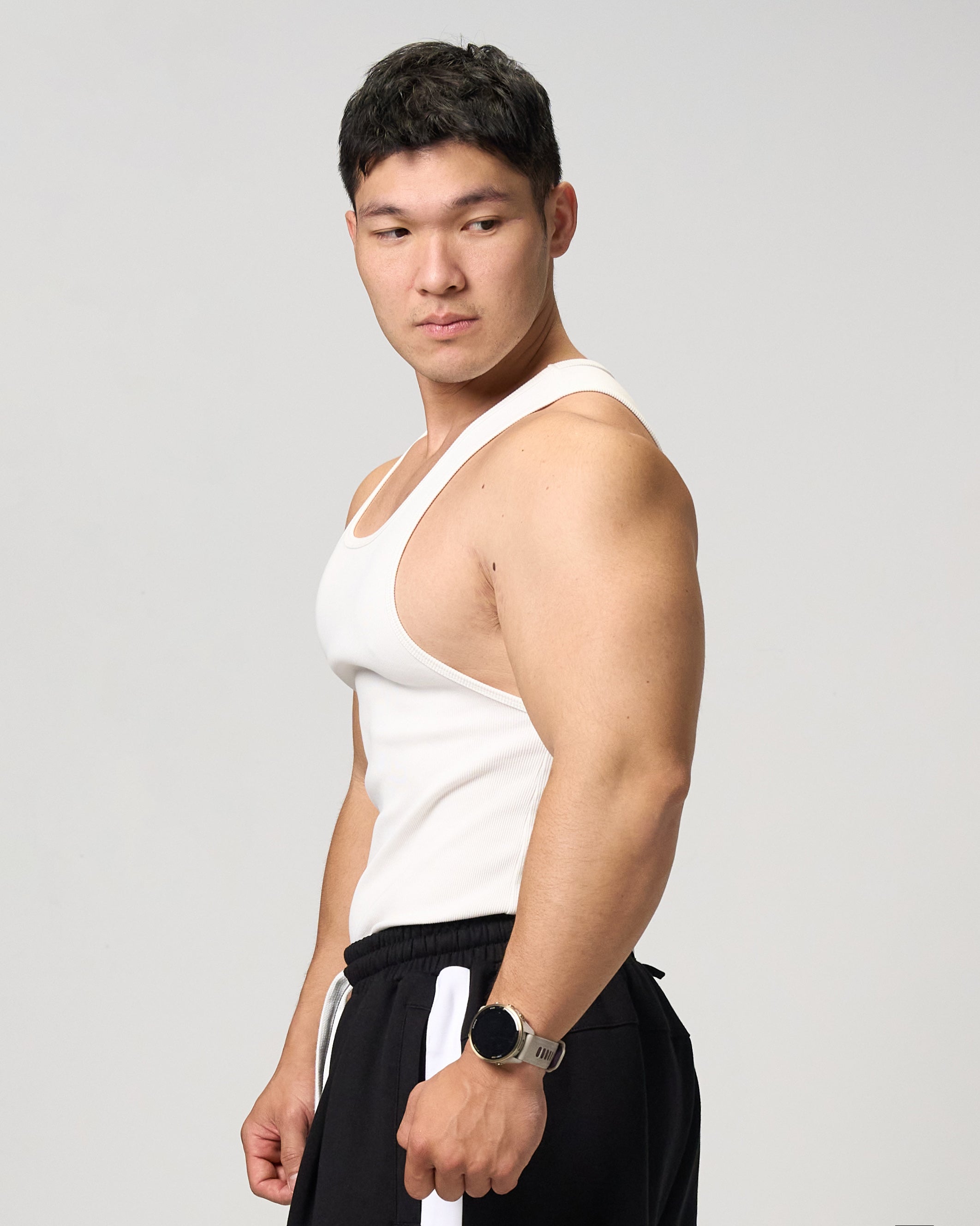 Wear it solo for training and you get a classic, hard-edged fitted look; layer it under shirts or outerwear for a clean, understated everyday style.