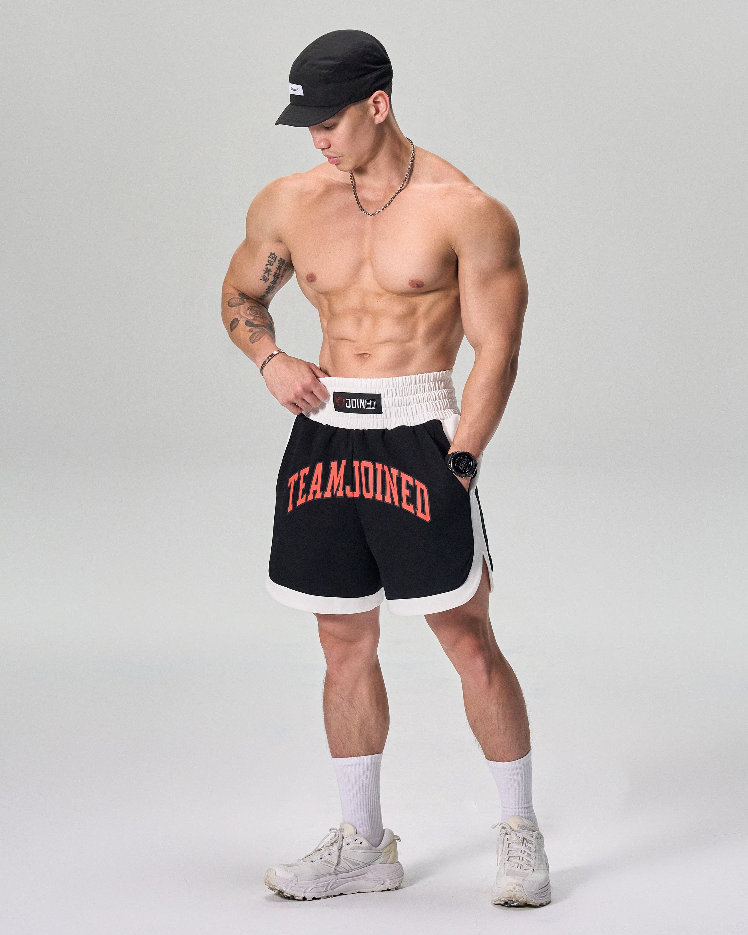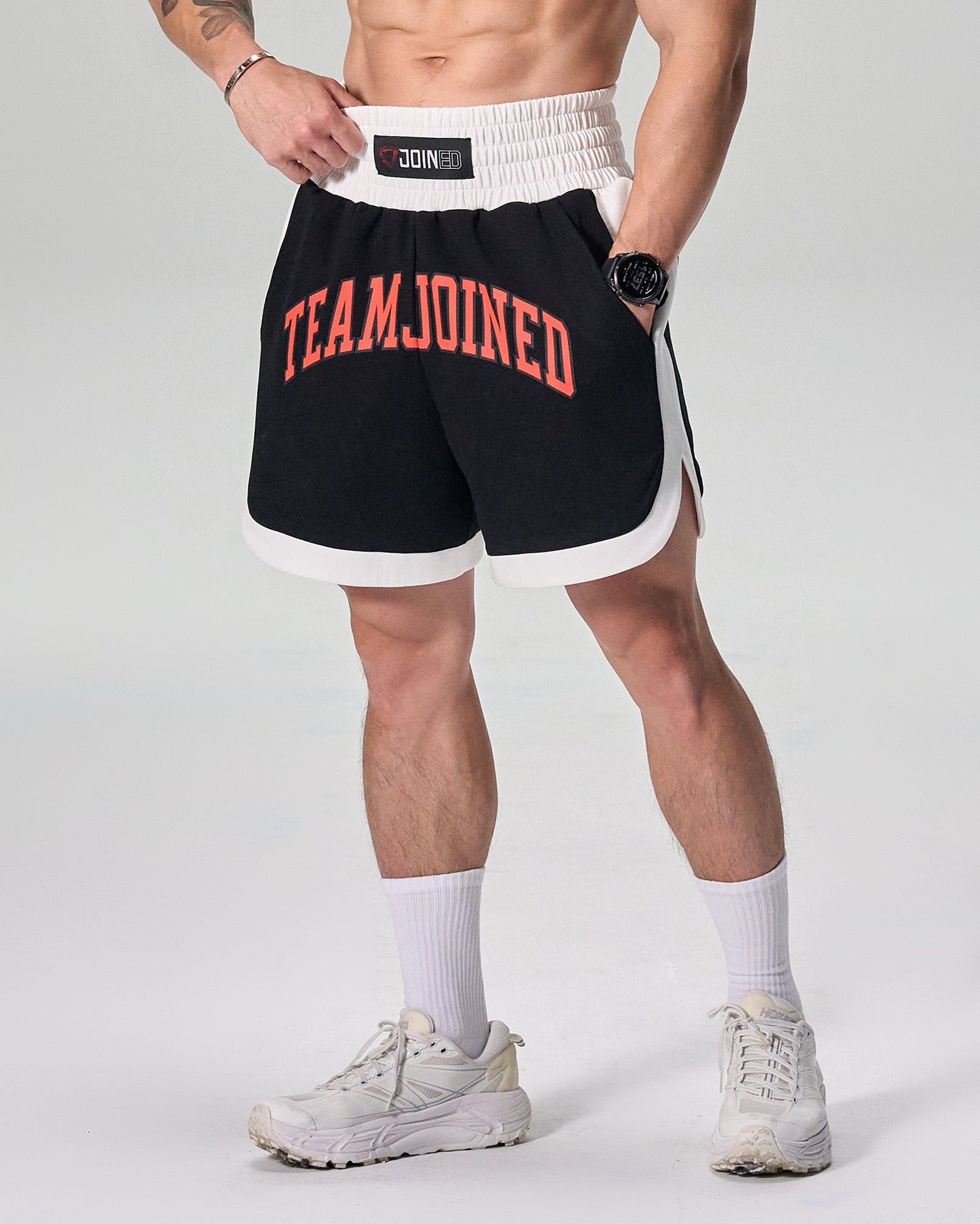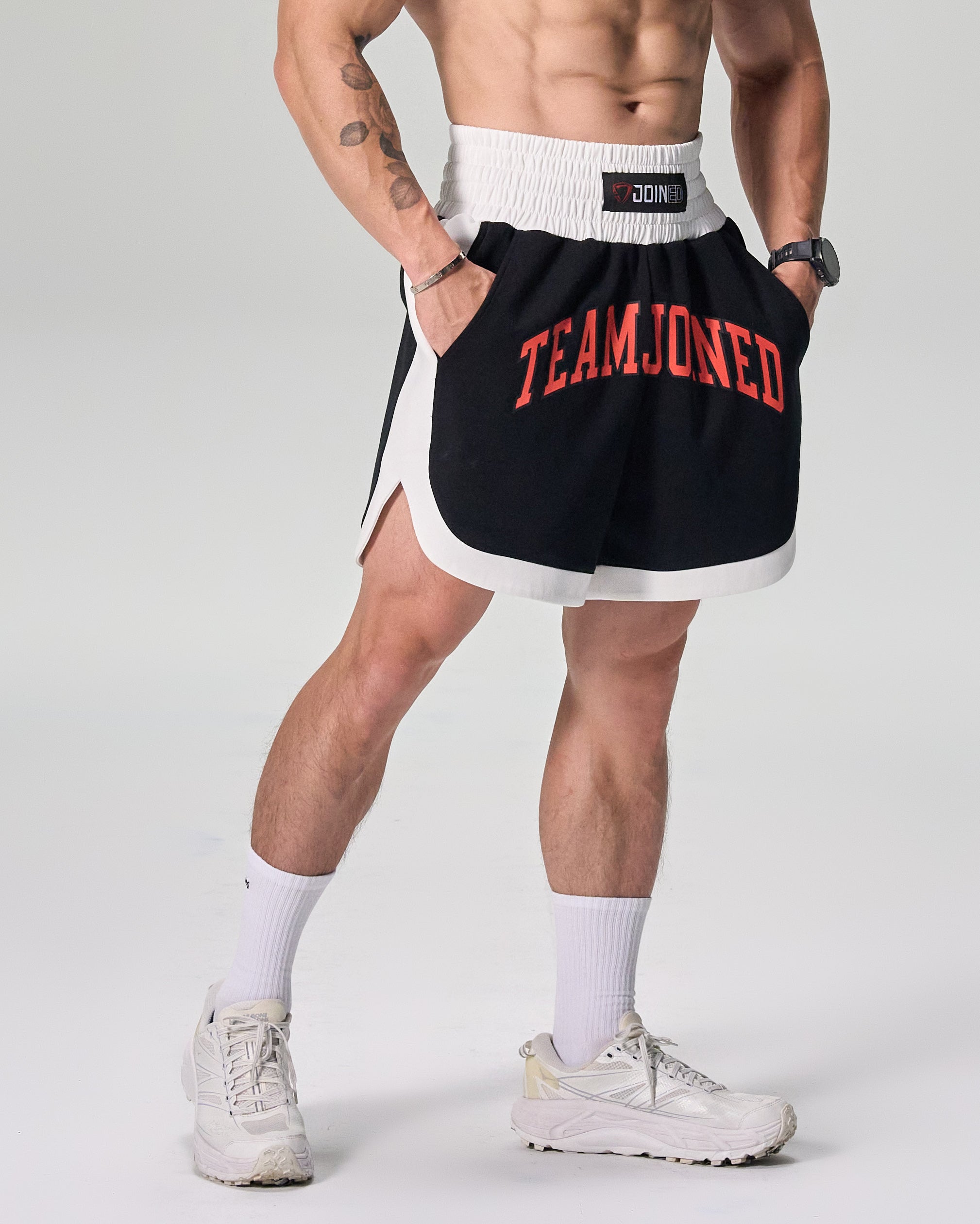 Made with medium-weight cotton blend, combining structure with stretch for a comfortable, skin-friendly feel. The classic high waistband and deep side slits enhance mobility, while the bold TEAMJOINED logo across the front legs and the shield logo at the back waistband deliver strong visual impact.