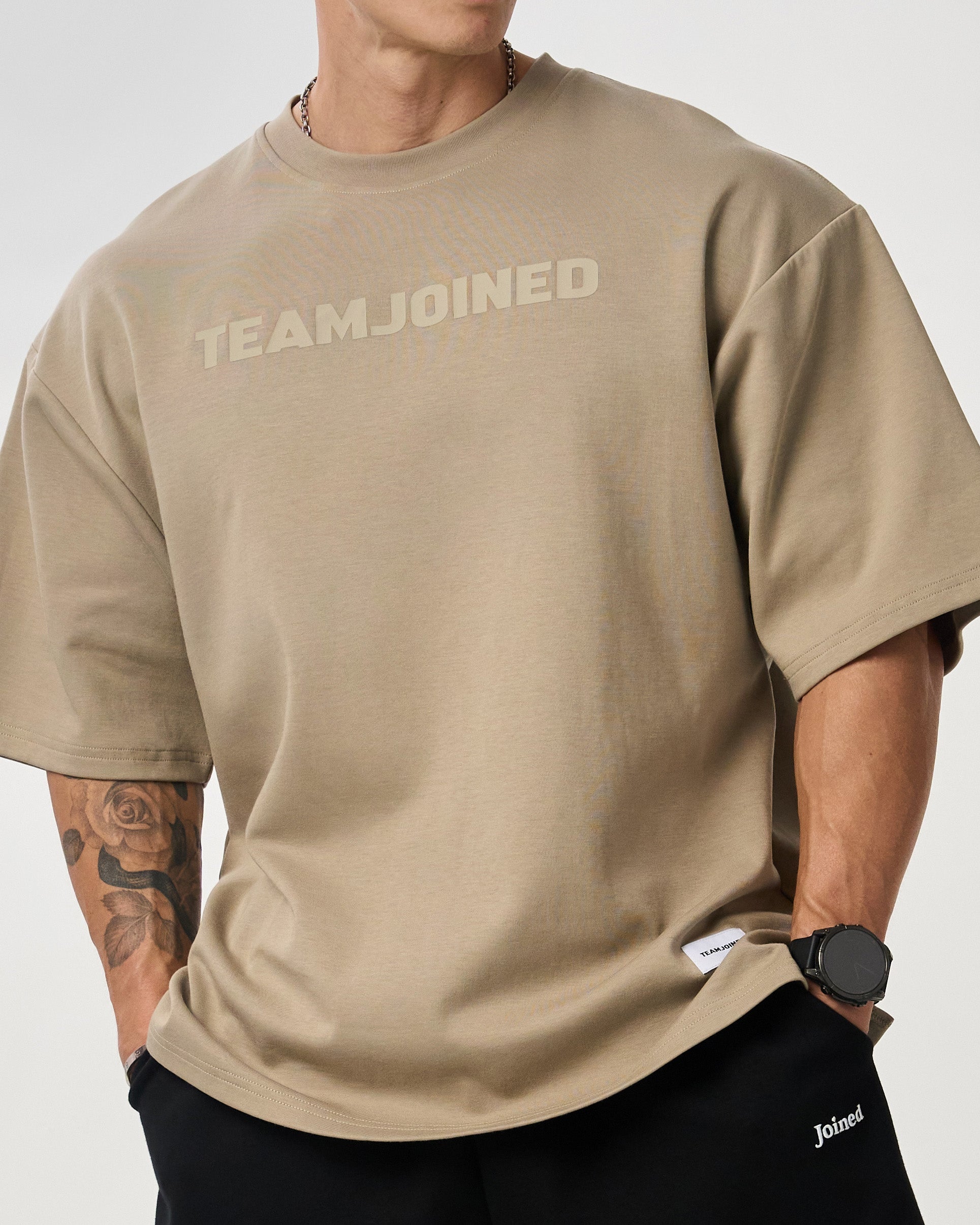 .Tone-on-tone TEAMJOINED chest logo for subtle detail
