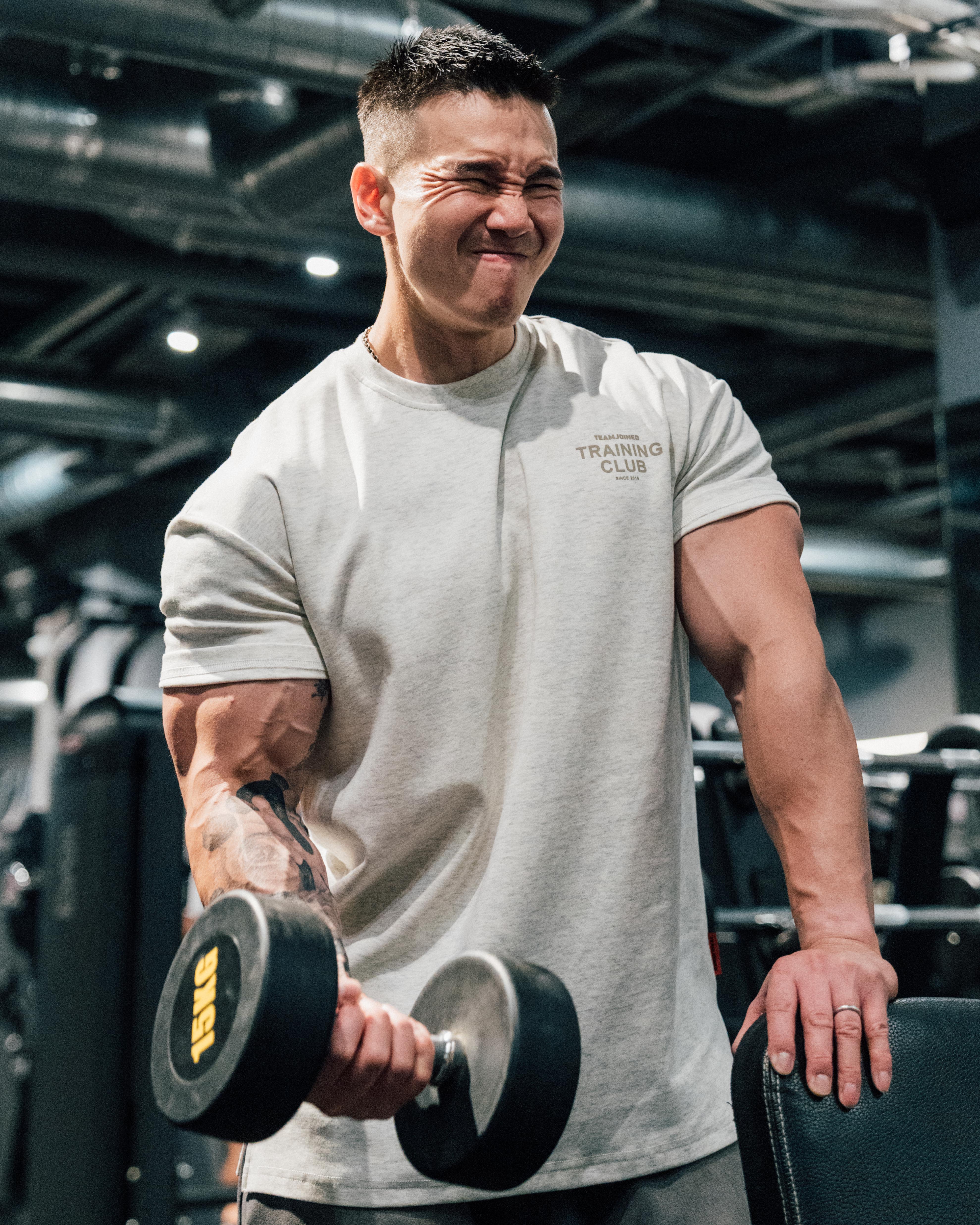 The TJTC™ CLUB Flexfit Tee features a soft cotton-blend fabric for a naturally comfortable feel. Its relaxed torso and fitted sleeves bring out an Old School gym silhouette — this is raw, unapologetic training style.
