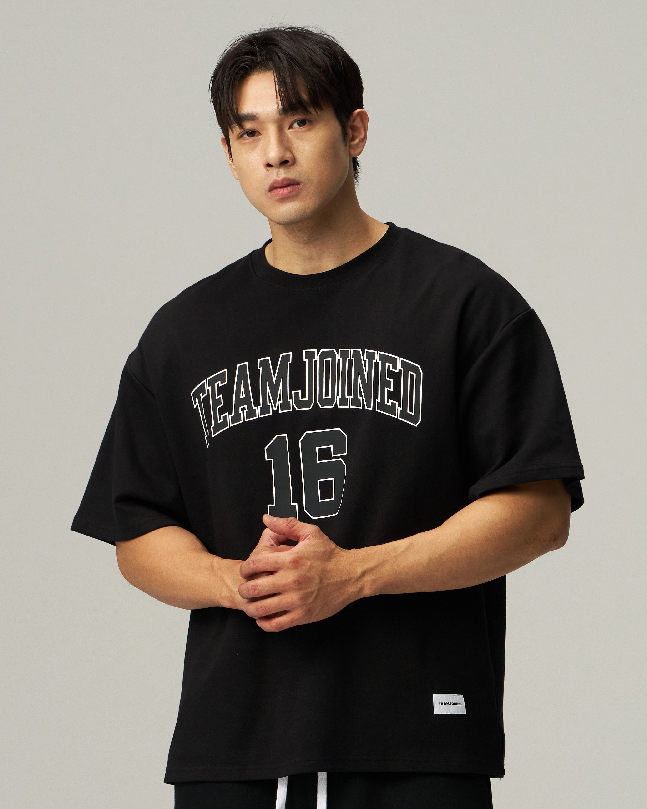 Dense yet soft fabric pairs with a wide, dropped-shoulder cut to hold a clean shape without feeling stuffy, while the arched TEAMJOINED 16 graphic on the chest puts full focus on your upper body.